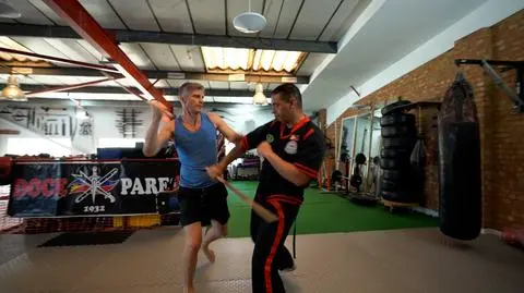 - Nigdy nie uderz się w twarz - podkreślił. - Zawsze atakujesz konkretne części ciała - dodał Jacek Jagódka. Następnie pokazał, gdzie i jak należy uderzać, aby obezwładnić przeciwnika i odebrać mu broń.