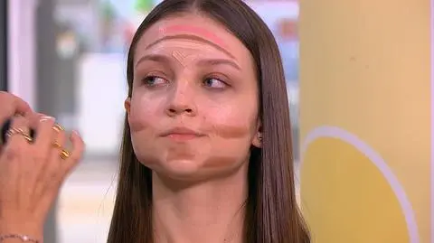 - Zaczynamy od czoła. Pierwszy fragment tęczy na różowo, później ciemny bronzer do konturowania, trzeci rozświetlacz, a na wysokości brwi korektor - wyjaśniła Marta Gąska.