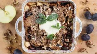 Jesienne owoce pod owsianą kruszonką