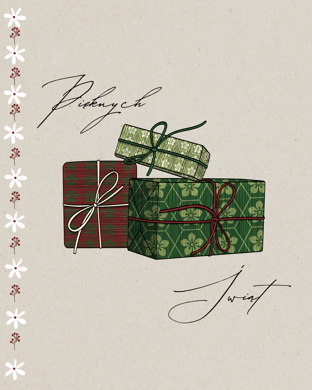 Z okazji Bożego Narodzenia 2025 stworzyliśmy serię oryginalnych kartek świątecznych, które możesz bezpłatnie pobrać i przesłać osobom, na których najbardziej Ci zależy. To prosty sposób, by przekazać ciepłe, świąteczne życzenia i wprowadzić bliskich w bożonarodzeniowy nastrój.