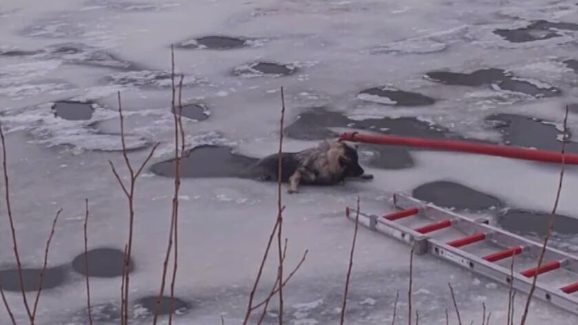 Siedmiomiesięczna suczka Nutka wpadła do lodowatej wody podczas spaceru nad rzeką. Dzięki błyskawicznej akcji strażaków z OSP Brańsk pies wrócił bezpiecznie do właścicielki.