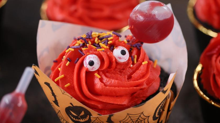 Jak zrobić babeczki na czarnym kakao, z czerwonym kremem, ciastka nietoperze z czarnym lukrem, kruche ciastka dynie z konfiturą malinową, a także brownie z pajęczyną?