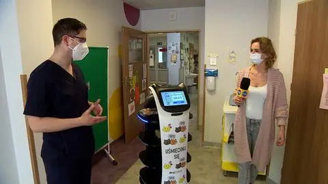 - Przede wszystkim jest to taki aspekt psychologiczny [...] chodzi o to, że dzieci mają dużo stresu związanego z operacją. Tutaj pomaga nam, żeby ten stres był o wiele mniejszy. [...] Może też eskortować pacjentów do danych sal, do sali zabiegowej i fizjoterapeuty - mówił Bartosz Szurlej, ortopeda.